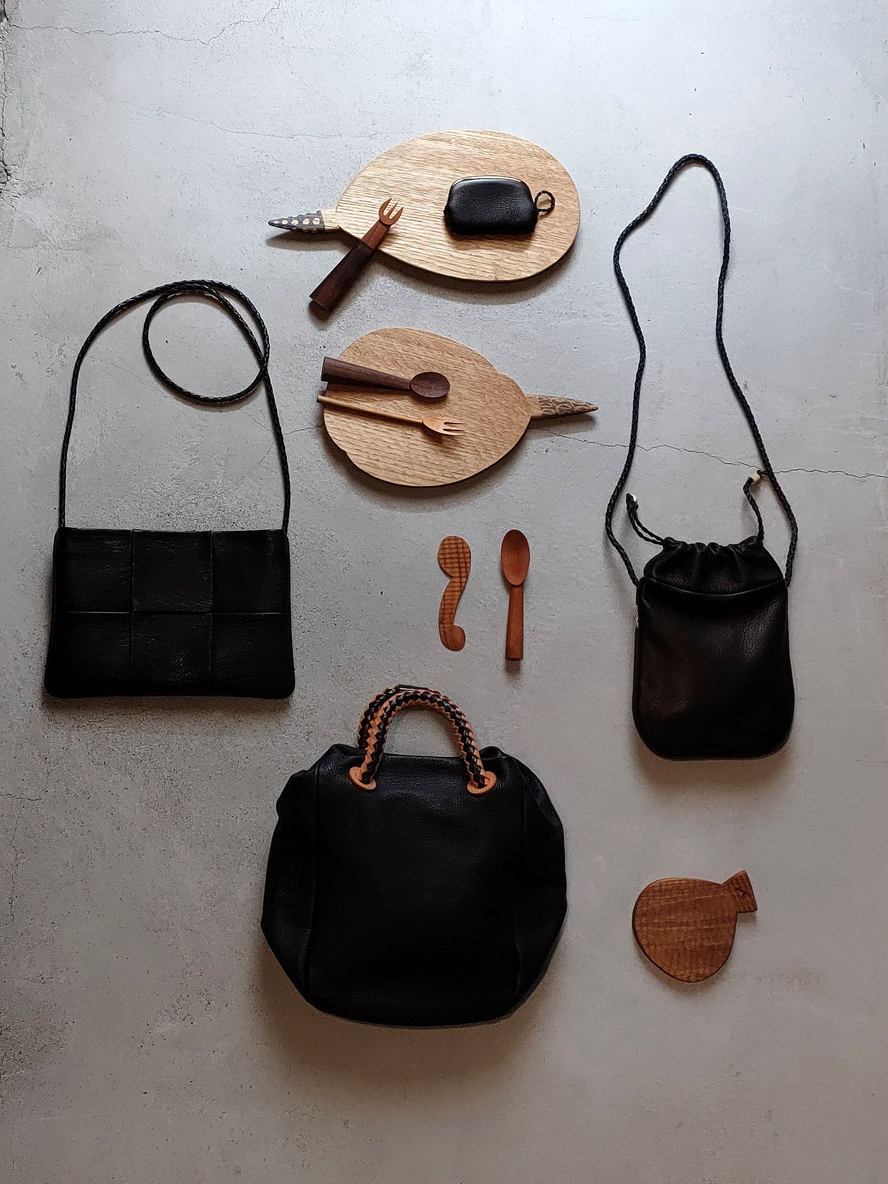 このごろは色々な形の小さなバッグ・ポシェットを作ることが増えました。