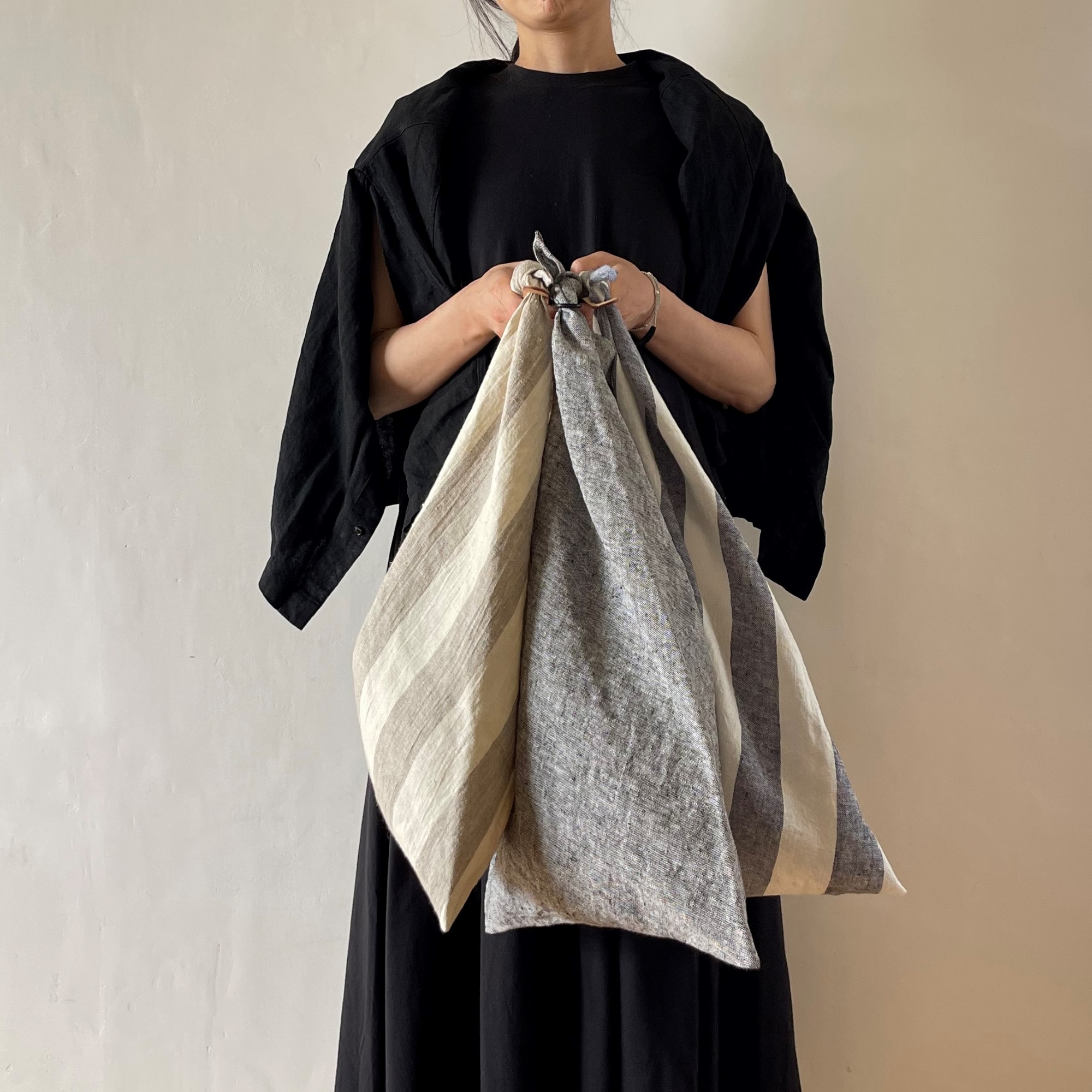 プレウォッシュ加工のふっくらやわらかリネンのあずま袋と