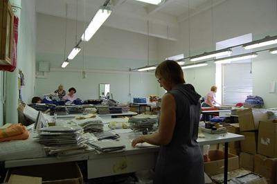 製品に仕立てる縫製までを請け負ったりもしているほどの、大規模工場です。